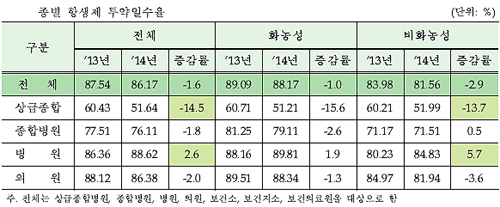 항생제를 90~100% 처방하는 기관은 1610기관으로 전년대비 104기관(6.1%) 감소했다.