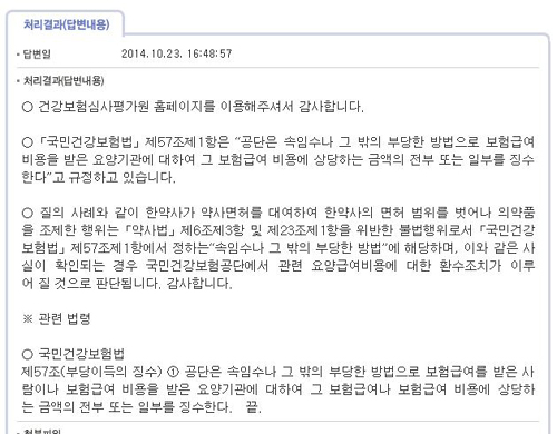 해당 약사는 "최근 성남시약이 문제 제기한 한약사 개설 불법 조제 약국의 경우 두 기관의 민원답변으로 볼때 부당한 방법으로 보험급여를 받은 것이 확인됐다"며 "국민건강보험법에 따라 보험급여 비용 금액의 전부 또는 일부를 징수해야 할 것"이라고 강조했다.