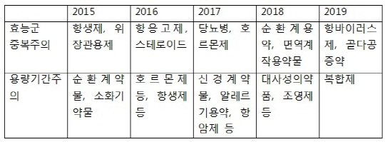 이는 의사와 약사 설문조사를 기반으로 수요자 선호를 기초로 우선순위를 선정했다.