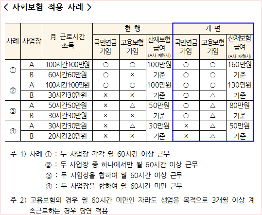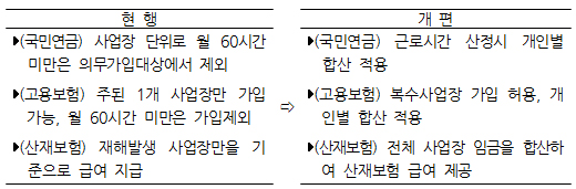 - 정부, 개인별 근로시간·소득 합산해 사회보험 적용