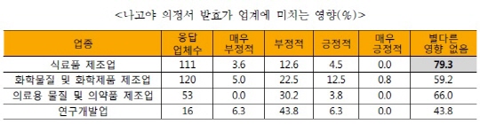 또 나고야의정서가 발효가 업계에 별다른 영향을 못 미칠 것이라는 응답이 66%로 과반수가 넘었으며, 부정적이라는 응답은 30.2%였다.