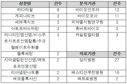 생동시험 분석기관과 시험기관은 일부업체와 병원에 집중되는 현상을 보였다.