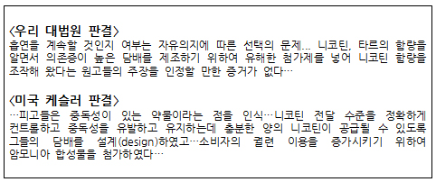 공단은 실제로 소송 당시 주요 쟁점이었던 니코틴 중독과 조작에 대한 대법원 판결과 미국 케슬러 판결(RICO사건)을 비교하면서 이를 입증해나갈 계획이다.