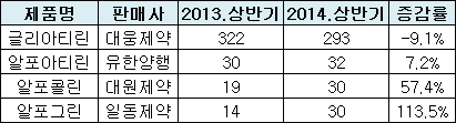 이 가운데 유한양행의 알포아티린, 대원제약의 알포콜린, 일동제약의 알포그린이 높은 성장률로 주목을 받고 있다.