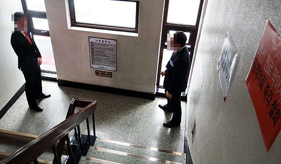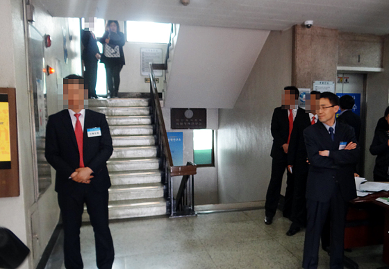 변영우 대의원회 의장으로부터 오늘 직접 질서유지책임자로 호명됐다는 양 의장은 회의 시작 2시간 전부터 대의원을 제외한 모든 인물에 대한 3층 회의실 출입을 막고 있다.