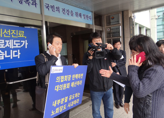 한편 전국의사총연합 나경섭 공동대표는 의협회관에서 노 회장의 탄핵을 반대하면서 피켓시위를 하고 있다.