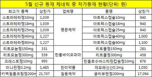 신규 등재 제네릭 판매예정가 선택도 줄이어