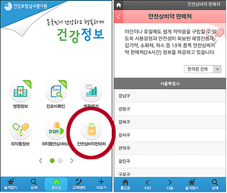 심사평가원 의약품관리종합정보센터(센터장 송재동)는 지난달까지 '안전상비약 판매처' 앱 개발을 마치고 최근 이 기능을 심평원 '건강정보' 통합 앱에 유틸리티 형식으로 탑재했다.