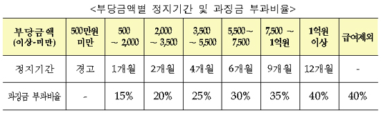 리베이트 제공금액이 1억원이 넘는 약제는 1년간 건강보험 급여가 정지된다. 해당 약제가 5년 내 재적발돼 마찬가지로 부당금액이 1억원이 넘거나 가중처분 기간만료 후 5년 내 또 적발되면 급여대상에서 제외된다.
