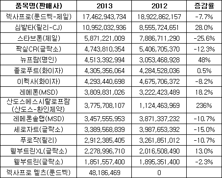 앞서 출시된 렉사프로 제네릭들도 승승장구하고 있다. 명인제약의 뉴프람은 2013년 전년대비 48% 늘어난 45억원을, 환인제약과 코프로모션하고 있는 산도스 에시탈로프람은 무려 236%가 증가한 37억원을 기록했다.