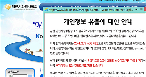 홈페이지에 안내문을 공지한 치협은 "추가적인 피해 예방을 위해 주민번호 일괄 삭제, 비밀번호 단방향 암호화를 23일 완료했다"며 "4월 완료를 목표로 진행하고 있던 KDA정보화 사업 중 홈페이지 전면 개편, 암호화 등 보안조치를 앞당겨 3월 중 완료하겠다"고 밝혔다.
