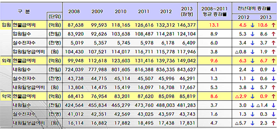 세부적으로 살펴보면 직장가입자의 비중이 해마다 늘면서 이 부문의 수입 증가 기여도가 지역가입자보다 높고 많아졌다. 2008년부터 작년까지 본인부담 월평균 보험료 증가율은 직장보험료 5.8%, 지역 5% 늘었다.