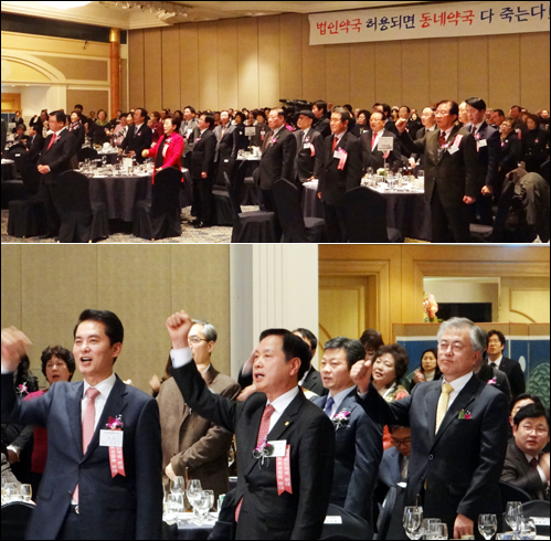 조 회장은 "재벌형 영리법인약국이 어마어마한 압력으로 모든 것을 퍼올리는 펌프는 국민의 건강마저 빨아드리는 괴물이 될 것"이라며 "약사회는 기존의 소규모 약국이 법인약국에 대항할 수 있는 자생력을 만들 수 있을 때까지 공식기구를 만들자는 것과, GPP제도를 도입하자는 두 가지 제안을 정부에 했다"고 덧붙였다.