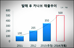 발매 첫해 100억을 돌파하며 성공적으로 시장에 진입한 카나브는 이듬해인 2012년 두배 이상 성장한 205억원으로 국내신약 중 최대의 매출을 기록하는 신약으로 성장했다.