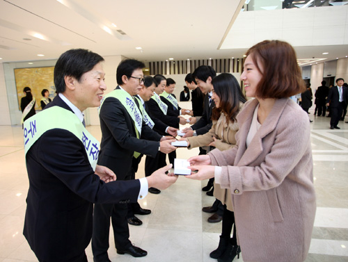 소통은 시무식부터 시작됐다. 박구서 JW홀딩스 사장과 한성권 JW중외제약 사장을 비롯한 각사 사장단이 새해 첫날 출근하는 직원들에게 기념떡을 나눠주며 덕담을 건네는 이벤트를 진행했기 때문이다.