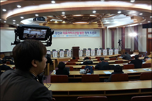 지난 주 김한길 당대표까지 참석해 의료영리화 저지 투쟁의지를 드러내며 강변하던 민주당 주최 토론회와는 매우 대조적인 풍경이었다.