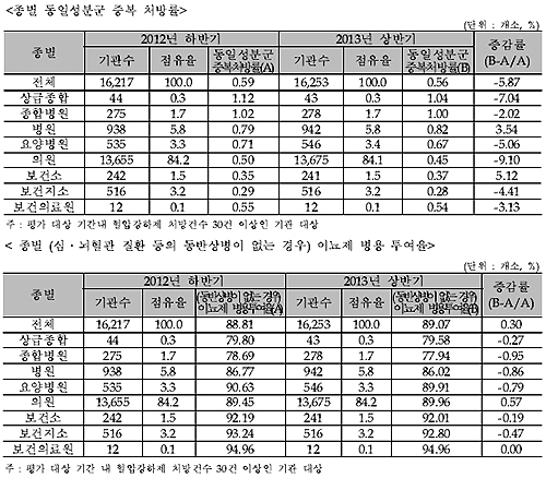 [심평원 2013년 상반기 고혈압적정성평가 결과]