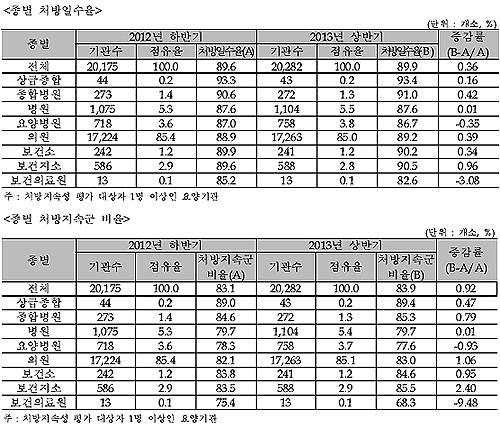 상반기의 처방일수율은 전체 89.9%였다. 이는 지난해 하반기 89.6%에 비해 0.36% 증가한 수치다.