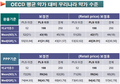 OECD 회원국과 대만을 포함한 30개 국가를 비교대상으로 삼아 약제비 적정화 방안 시행이전 3년부터 올해 3차 약제급여평가위원회 결과까지 반영했다.