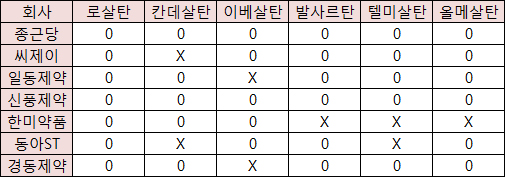 2008년 특허가 풀린 로살탄(코자)을 시작으로 칸데살탄(아타칸, 2009년), 이베살탄(아프로벨 2011년), 발사르탄(디오반, 2011년)에 이어 올해 텔미살탄(미카르디스)과 올메살탄(올메텍) 등 대형신약들의 특허가 줄줄이 해제됐다.