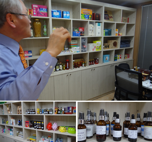 그런 그의 노력을 엿볼 수 있는 공간이 바로 집무실 한 구석에 마련돼 있는 바로 이 연구 공간이다. 이 곳엔 개발 과정을 살펴볼 수 있는 원료부터 시제품, 샘플까지 다양하게 구비돼 있다.