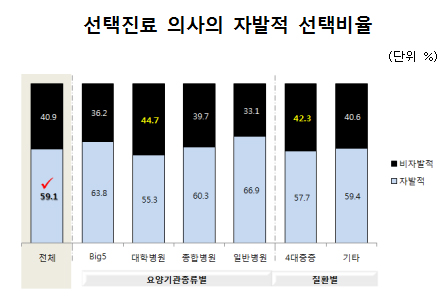 환자 51.9%는 선택의사보다 경력은 짧지만 진료비가 싼 의사를 선택할 수 있다면 일반의사를 선택하겠다고 답했다.
