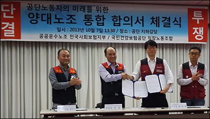 건강보험공단 노동조합의 양 대 축을 이루고 있었던 사회보험지부와 직장보험노조가 통합안에 최종 사인했다.
