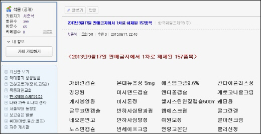 회사 측은 대표가 운영하는 카페를 통해 판매금지 해제 품목 전체를 공지했다.