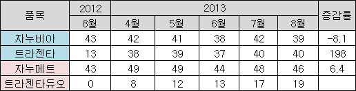 다만 트라젠타가 지난달 처음으로 자누비아를 추월했고, 트라젠타듀오의 성장곡선이 가파르다는 점에서 내년 상반기에는 본격적인 리딩품목 경쟁이 전개될 것이라는 관측이다.