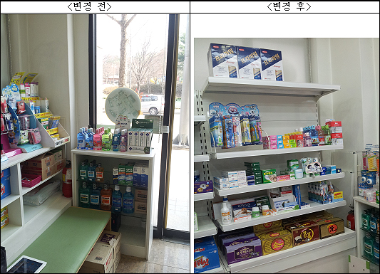 먼저 의약품 진열대, 일반판매 전시, 고객 대기공간 천정 조도 문제 등을 해결했다.