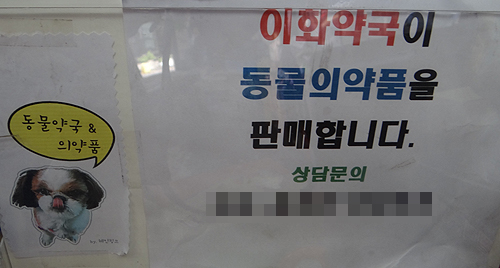 문닫힌 약국 셔터 3면에 부착된 포스터. 멀리 있는 동물병원에서 애완견 약을 구입해 왔던 견주에게는 반가운 소식이 아닐 수 없다.