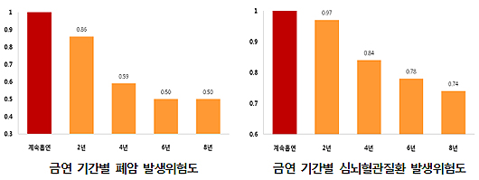 암 질환과 흡연이 유의미하게 연관된 것을 입증하는 것으로, 우리나라 건강보험 가입인구 130만명에 대해 19년 간 추적조사를 통해 분석한 자료라는 점에서 의미가 있다.