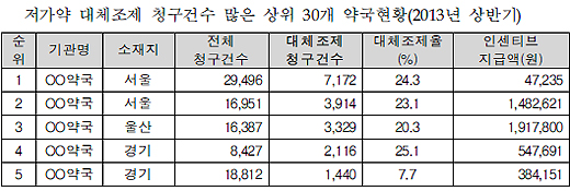 대체조제 높은 약국, 조제 5건중 1건은 인센티브