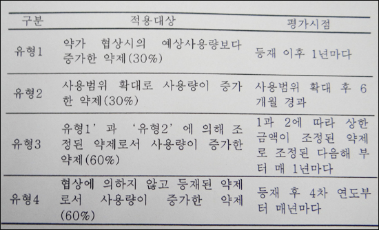 또 급여범위 확대 후 6개월 뒤에 사용량이 증가해 사용량 약가 연동 '유형2' 협상을 진행했던 신약이 그 뒤 '유형1'과 '유형3' 협상대상에 포함됐다면 '유형1' 협상을 우선 적용한다.