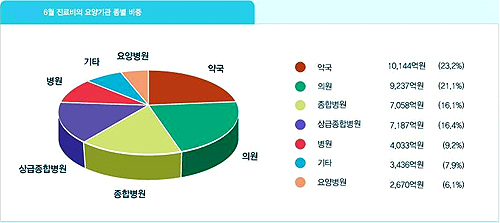 그 외 종합병원 7058억원, 의원 9237억원, 약국 1조144억원을 기록했다.