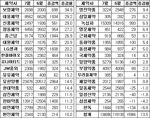 가장 선전한 제약사인 보령제약은 전월대비 34.9% 상승했다.