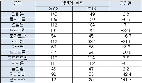 - 상반기 주요 전문약 매출 분석, 대다수 주력품목 고전
