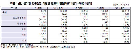 지난해 4분기와 비교해 변동 양상을 보면 상급종병이 3억원 늘어 0.8% 증가록했고, 병원이 6억원 수준인 0.5%, 보건기관이 12억원 수준인 3.8% 증가했다.