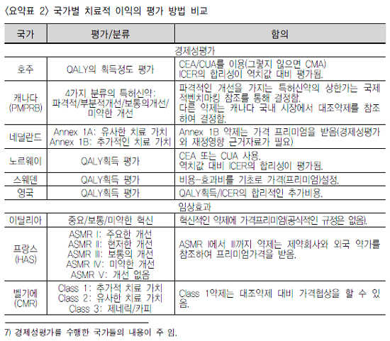 그렇다면 다국적 제약사들의 모국인 선진국에서는 혁신성을 급여 평가 때 가치로 인정할까?