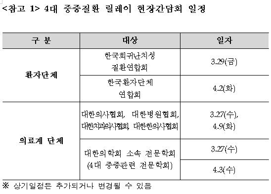 현장간담회는 환자단체와 의료단체에서 시행된다.