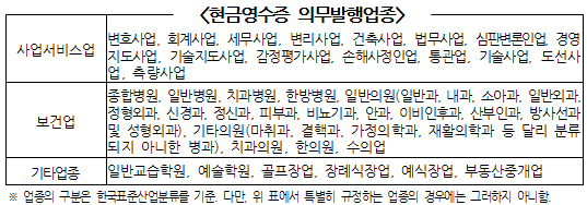 변호사 등 고소득 전문직과 병원, 학원, 예식장, 유흥주점, 산후조리원 등에 한정돼 있는 현금영수증 의무발행 업종도 대폭 늘어난다. 현재 약국은 현금영수증 의무발급 대상 업종에서 제외돼 있다.