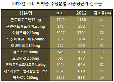 약가 인하 여파 블록버스터 성분 가중평균가 '폭락'