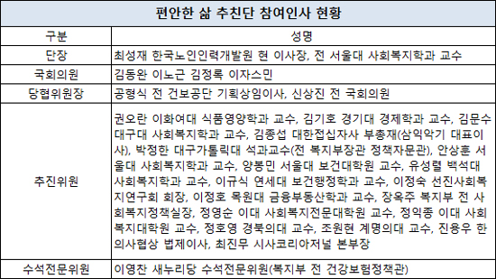 또 고용복지분과 인수위원인 안상훈 서울대 사회복지학과 교수를 포함해 18명의 인사가 추진위원으로 참여했다. 이중에는 이규식 연세대 교수, 양봉민 서울대 보건대학원 교수, 장옥주 전 복지부 사회정책실장 등도 포함돼 있다.
