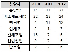유방암 임상은 2011년 11건에 불과했으나, 2012년에는 31건을 기록해 3배 가량 늘었다.
