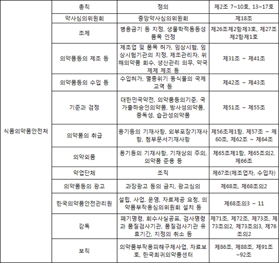 또 마약류관리법과 의료기기법은 사실상 식약처가, 약사법은 복지부와 식약처가 반씩 관장하게 된다.