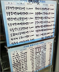 23일 약국가에 따르면 환자들과 일반약 가격 시비를 방지하기 위해 한동안 사용 하지 않았던 종합가격표시 안내문을 다시 부착하고 있다.