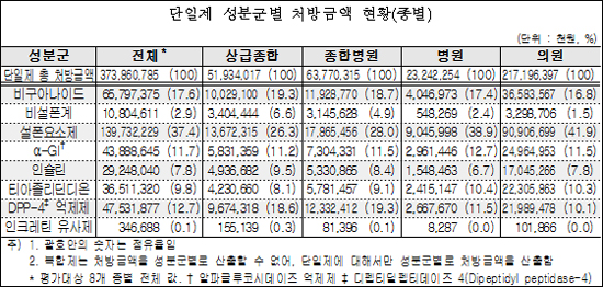 혈당강하제 처방-비구아나이드, 청구액-설폰제 1위