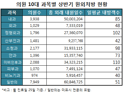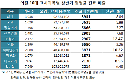 올해 상반기 의원급 의료기관은 월 평균 3301만원을 건강보험 급여비로 청구한 것으로 집계됐다.