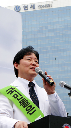 노환규 회장은 "이를 깨뜨리는 것은 언젠가 누군가 반드시 해야만 하는 일"이라며 "낮은 진료수가를 강제하고, 그리고 성분명처방과 총액계약제의 수용을 압박하는 정부의 강압적 횡포에 더 이상 뒤로 물러서지 않겠다"고 말했다.