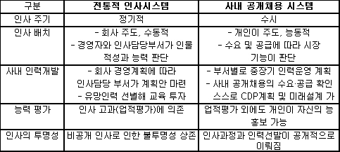 사내 공개채용 시스템은 회사 내에서 부서간 공개적으로 채용을 실시해 직원들이 자유롭게 조직을 이동하도록 지원하는 제도다.